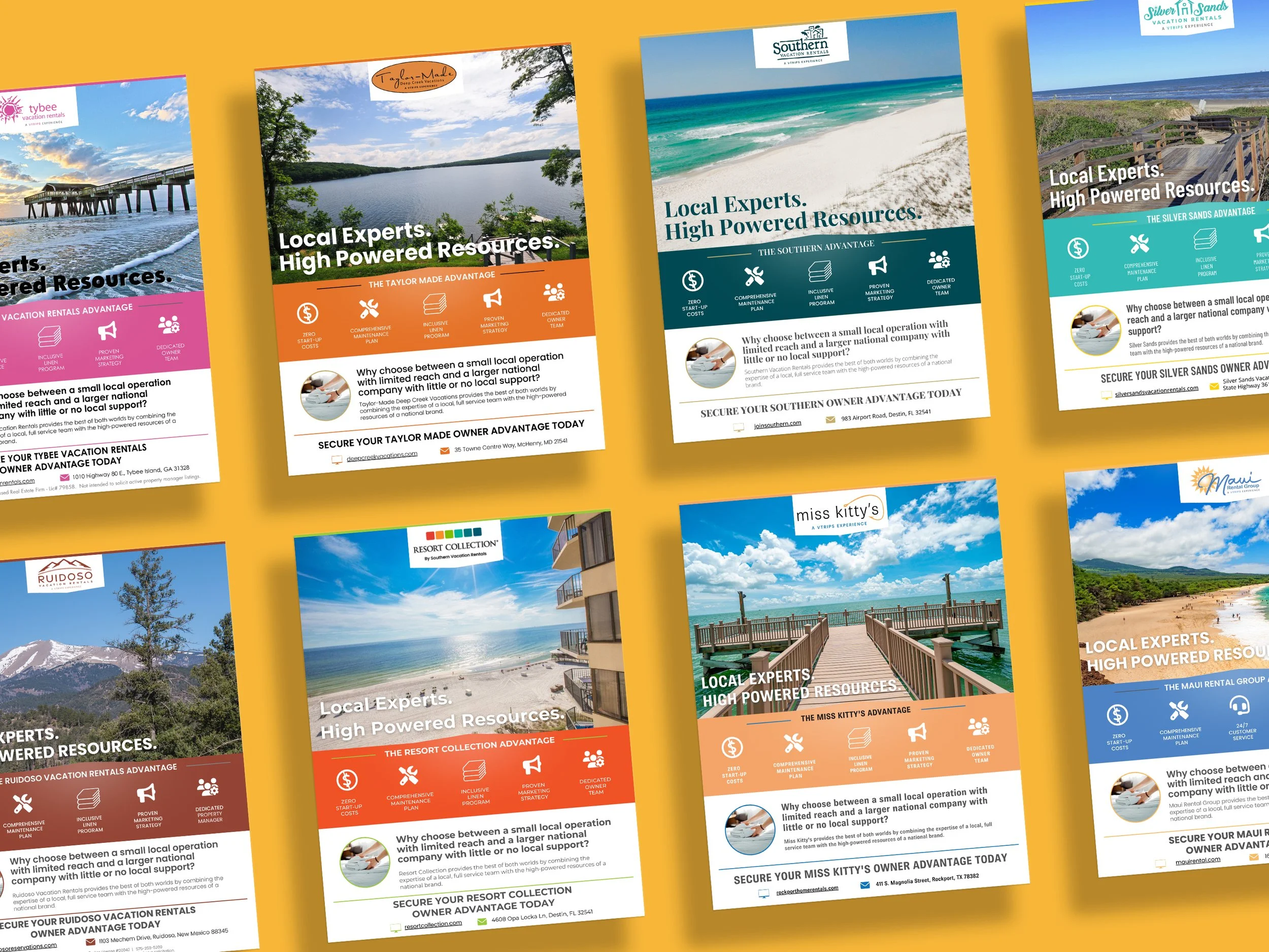 I created templated forms the VTrips team can easily access and edit to match their hundreds of sub brands across the nation. Leveraging Canva and providing their teams with the needed tools to make edits, I enabled VTrips to scale their marketing print promotions across their properties with ease and speed.